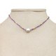- 珍珠颈链长度: 15.5英寸 (连扣长) 珍珠尾链长度: 2英寸 半宝石: 紫水晶, 太阳石 水晶: 蓝纹石 颈链材质: 养殖淡水珍珠, 925 银 珍珠尺寸: ~11mm 珍珠颜色: 白色