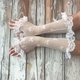 The model in the photo of our mittens has S size – 18,5 cm palm measure. Mittens are made of stretching material, size S fits most.