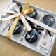 每支棒棒糖有包装袋,并以蝴蝶结缎带束口,5支个别固定装于透明礼盒内