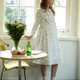 - 清新又文艺的一款秋季连衣裙。胸口有一个非常特别而古典的分割,加上细细的复古细褶,碎花是带有雾霾蓝的很雅致的细小碎花。