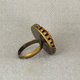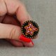 带有刺绣星星的手工戒指。 图案是我设计的,也是我绣的。 我在每幅刺绣图片中使用最大数量的颜色,使其更加逼真和丰富多彩。 这颗橙色的星星用棉绣线绣在黑色亚麻织物上。 细节: - 圆形为 20x20 毫米(0,8x0,8" ); - 材质:黄铜环底座、棉线、亚麻布; - 戒指是可调节的。