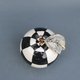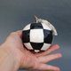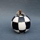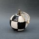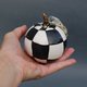 瓷苹果手工制作。不寻常的苹果,放在黑白笼子里,叶子有金色边框和纹理。苹果,仿佛神话般;来自仙境。