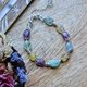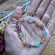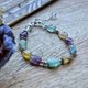Woman hand bracelet made of NOT processed fluorites. All fittings are made of 925 sterling silver. There is an extension silver chain to adjust the length. Each piece comes with a gift velvet pouch.