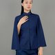 这款深蓝色旗袍斗篷西装外套采用立领和镂空设计,轻松展现优雅气质,完美适合职场会议。搭配量身定制的长裤,呈现精致专业风范,绽放永恒时尚魅力。
