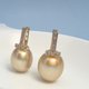 南洋珍珠一直是天然海水珍珠中的贵族。纱织小姐甄选出一对最小直径约12.5mm的大颗粒水滴形近圆南洋金珠,配以晶体锆石镶嵌S925银14K注金国母款配件形成简约款耳环。珍珠呈现出浓郁的金色,皮光细腻,金色辉煌,富丽而端庄,总重达到惊人的8.9克,虽有微瑕为生长纹但瑕不掩瑜,不同光线背景下呈现出不同的光感和光彩,具有简约耳奢华的珠宝感,贵气十足。