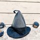 手工制作的牛仔拼接帽,带有泼漆造型,帽围54cm,男女童接可用,头围较小的顾客也可使用,头顶上有个小天线造型,非常俏皮吸睛。