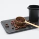 不锈钢金属豆匙,可装约12-15g的咖啡豆。 四种颜色:不锈钢、金色、玫瑰色以及黑色, 平整的底部,可以当作临时的填压器使用。 扁平的握柄,除了可用来整粉,亦特别为了密封罐的收纳圈而设计。