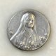 这件壁挂式圣水钵主体为白色大理石,上方结合镀银制成的 Art Nouveau 新艺术风格装饰,可见花卉与缎带细节,有银匠的落款的浮雕,描绘的是圣女小德兰(St. Therese of Lisieux),她亦被称为“耶稣圣婴圣女德兰”或“小花圣女”,以其“小道”(Little Way)的精神闻名,强调以伟大的爱心完成日常小事,其标志性象征为玫瑰花。底部附透明玻璃水盅。