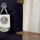 - 这件壁挂式圣水钵主体为白色大理石,上方结合镀银制成的 Art Nouveau 新艺术风格装饰,可见花卉与缎带细节,有银匠的落款的浮雕,描绘的是圣女小德兰(St. Therese of Lisieux),她亦被称为“耶稣圣婴圣女德兰”