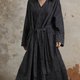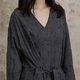 - 【青黛灰】新中式复古 亚麻提花/V领显瘦连衣裙