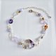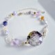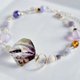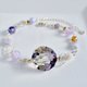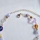 以引人注目的宽大彩绘玻璃风格压克力珠饰为主体,搭配迷幻的雾面浅紫水晶色卢娜石、紫水晶亮面与黄水晶色等火光抛光捷克珠,以及不透明紫与镀金色的玻璃珠,精心打造出这款时尚手链。☺