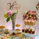 以很多的玻璃罐及水晶感的蛋糕架呈现;花艺以白及粉为主