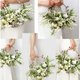 点缀其间的棕色心型蔓藤“爱之蔓”与空气凤梨“松萝”,增添了时髦的自然气息;成串的小玫瑰则显得清纯而可怜动人。