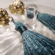 半立体金色篓空球直径约1.4cm、灰蓝流苏长度约3.5cm