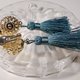 金色缕空雕花球、镀金耳夹、A级手工流苏