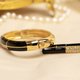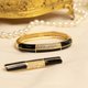 - 奥地利Swarovski名牌古董,俐落几何黑珐琅镶莱茵石,镀金手镯