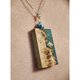 木制手工吊坠。 18k金。 项链。 油橄榄木和树脂环氧树脂以及金色和绿松石