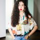 - ziziFei古着感港风衬衫女复古冷淡vintage宽松印花短袖花衬衣雪纺