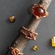 因缘际会开始接触到金属创作,从一开始的铝线摆件、后以铜线缠绕铋晶体做成坠饰、再因和朋友交流下,接触蕴含白垩纪(6500万~1亿多年前)动植物的树液化石:缅甸琥珀(琥珀中年份最久(至少8千万~1亿2千多万)、种类最多、硬度最高(莫式硬度2.5)、亦开始认识充满各式色彩与能量的水晶,并开始“铋元素SBI”的创作之旅。