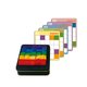 五色磁铁带着走,透过游戏卡可玩颜色对应,也可利用形状、颜色来代表不同数字,刺激记忆,借由游戏化的学习,让过程变得有趣。 *5颜色排列,训练视觉辨识 *多种不同难易度的挑战图卡,动动脑,活化记忆,一起完成任务 *随意拼贴,简单创作成ㄧ幅美丽的作品 *加入数学提升手眼协调、观察力和专注力 材质: 松木、铁 尺寸: 16.5x15x5cm 内容物:铁盒x1、产品说明书x1、题目卡x15、空白题目卡x4、彩色方形木块x25