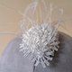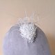 #小巧的底座缝上优雅的蕾丝花与亮片,并妆点手工修剪的小羽毛,最后以施华洛世奇小花朵造型水晶做收尾