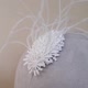 **这款小巧的新娘头饰底座是由手修的蕾丝小花层层叠叠缝制而成,花朵间隙点缀了亮片和羽为整体增添了一抹细腻的飘动感。背面是金属发梳设计可以任何角度插于发型中,搭配盘发、编发还是松散的波浪卷发,都能提升整体造型的典雅度。**