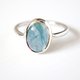 - 8x11mm 蛋形卜面海蓝宝纯银戒指