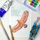 - 从原创手绘水彩画截取元素手工制作的作品。