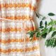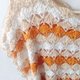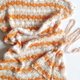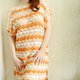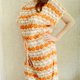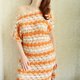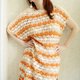 库存非常可爱的针织棉连衣裙。 这件连衣裙采用米色、白色和橙色三种颜色的条纹针织而成。 欢乐和阳光心情的颜色!