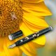 这款设计使用非常讨喜的流线造型,您会在笔身1/3处看到我们铸模制造的品牌logo, 笔的两端都可以开盖,笔尖部分打开笔盖,金属精雕logo的握位隐藏在笔身,直接可以书写,往上方开盖,您可以看见也有精雕logo的不锈钢管精致的包复住吸墨器,旋转开钢管即可使用吸墨器上墨,在层层组合的过程中,因为这有趣的变型,美丽的卵壳、螺钿、漆艺工艺,更增加了书写的乐趣!