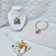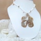 自然色蝴蝶兰缀金属亮粉与淡金箔,搭配缀饰贝壳的白色珠链