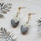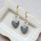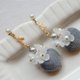 - ● 医疗钢珍珠耳针、螺旋珍珠耳夹 ● 施华洛世奇圆珠、树脂花、毛尼爱心吊坠、镀18K金配件 ● 耳环总长 5.5cm x 1.8cm