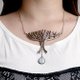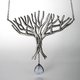 以扇形的树枝结构为主体,将水滴造型的蓝晕月光石垂吊在下方,表现成树根从土壤里吸收的水。眼球状的树纹依着树干攀延而上,就像正在看着前方一般,这一刻的树似有了生命,从幻想的世界中进入真实,给了观看者不同的感受。