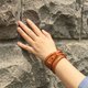Angels 皮革手环,波希米亚的浪漫与随性,夏日海边穿搭最佳配饰。棕色日本植鞣牛皮革皮质柔软有型,搭配黄铜色金属扣。搭配定制化刻字,最佳展现品味的小配件。
