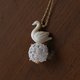 此款项链结合了由日本玻璃工艺师精心制作的鸟与兔造型吊饰,并以丝绸蕾丝编织点缀。