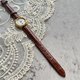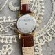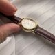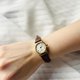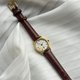 手表搭配全新的棕色真皮表带,与珍珠母贝表面形成和谐对比,增添知性与高贵气质。金色表壳与时标设计简约大方,完美衬托表面的天然美感,整体尺寸小巧精致,适合日常佩戴,无论搭配休闲或正式服装皆显得时尚大方。