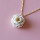 以娇嫩的山茶花为主题,运用“つまみ细工”(捏捏细工)的传统工艺精心制作。一片片7mm的小花瓣细腻地排列,搭配金色系的链子,营造出高雅别致的氛围。