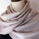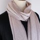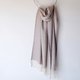 这是一款使用来自意大利纺织公司的高品质 100% 喀什米尔丝绸线材编织的中型围巾。我们使用两股细纱,以温柔的手工编织方式制作,与机器编织的产品不同,它能蓬松柔软地吸入空气,触感极致滑顺,轻盈地贴合身体。