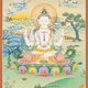 特色:观音以四臂姿势出现,坐在莲花宝座上,手持念珠、莲花和许愿珠。