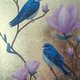 《燕子》画作极简风格,亚麻布油画平铺在木担架上,边缘涂漆; 作品的金色背景是用金箔制成的,并涂上清漆。 这幅画的尺寸为 74x30 厘米(29.1x11.8 英寸)。
