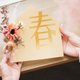 2. 有别于传统常见的红色纸春联,将春与福二字烫上金箔,放在特别挑选的厚磅香槟金箔卡上,金屋里有着春与福,象征为家人迎春纳福的好兆头。