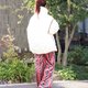 采用了触感滑顺、适合四季着用的剪绒天鹅绒面料,并印上 Moyan Ecri 原创的“Link our Ties”图案,打造这款休闲长裤。