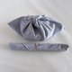 套装包括一个午餐袋大小的 Azuma 包和一个可以卷起和包裹的三角形筷子包,全部由相同的和服布料制成。我使用生产过程中剩余的布料。