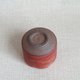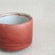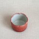 此作品选用细致的信乐烧陶土,以辘辘精心制作酒杯后,再施以赤绘上釉并经过多次烧制而成。赤绘的笔触刻意不求均匀,以展现手作的温润质感。杯内则施以白色釉药,并绘上红色线条,衬托出盛装饮品的色彩。杯口呈花形,触感滑顺。