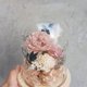 产品说明:永生玫瑰、康乃馨、绣球花、法国白梅、兔尾草等花材