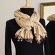 在温暖的咖啡欧蕾色羊绒围巾上,