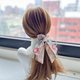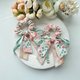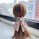 使用两款不同的美国品牌棉布搭配制作成长尾蝴蝶结、加上缎带和钉珠做成的发圈,气质浪漫,无论上班或休闲聚会都适合配戴。