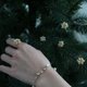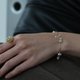 • 黄铜电镀 14K 真金手链 (Brass with 14K Gold Plated Bracelet):链条与坠饰完美呼应整体设计。 / Chain and charms harmoniously match the overall design.