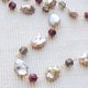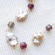 A necklace that combines distorted mauve color keshi pearls and Czech beads.
