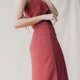 - High waisted slight A-lined midi skirt with wooden buttons.